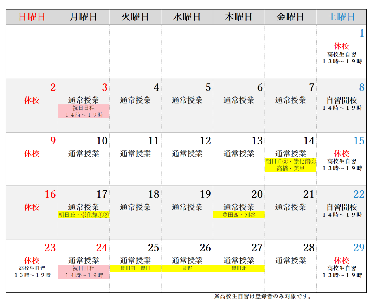 【11月土曜開校日程】