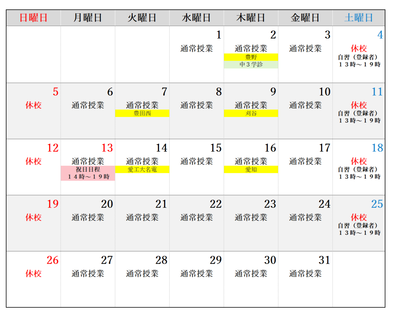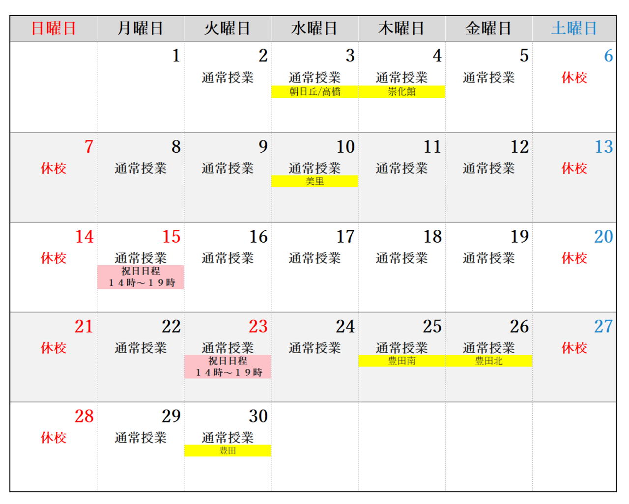定休日 | 土曜※・日曜 土曜は不定期開校 |